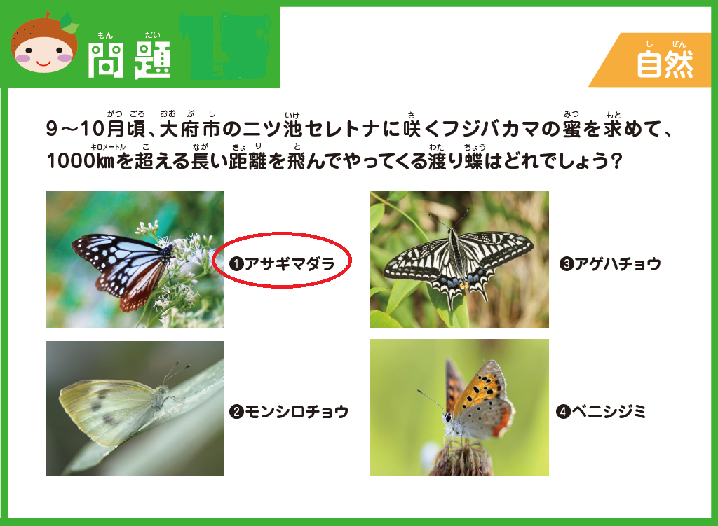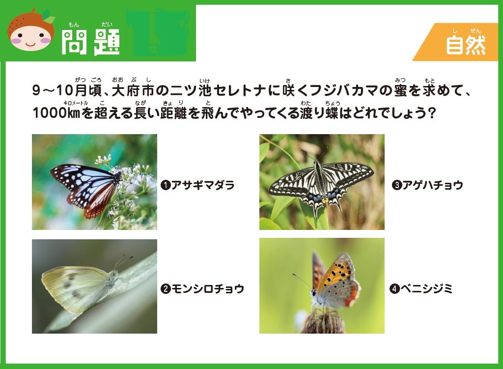 今回の自然の問題には、綺麗な羽の蝶々が出てくるよ。