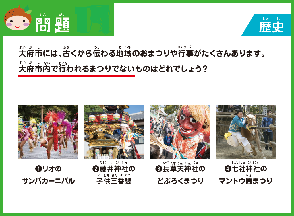 過去に開催された「おおぶこどもふるさと検定」の問題を掲載しています。